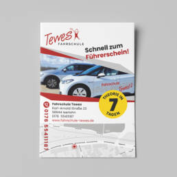 Gestaltung eines Flyers und einer Anhänger-Plane für die Fahrschule Tewes.